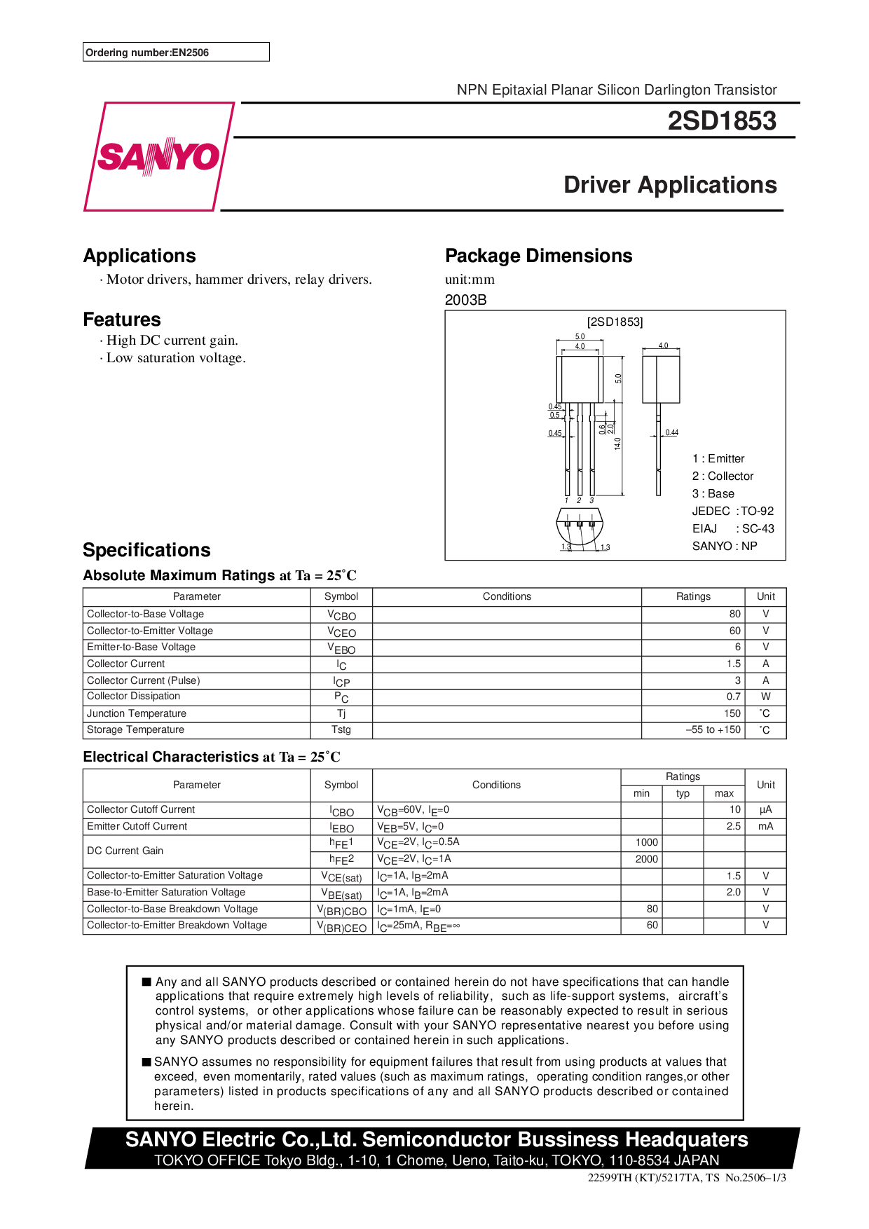2sd1853 最低价格1.00元 ,最高价格1.00元 ,平均价格 1元